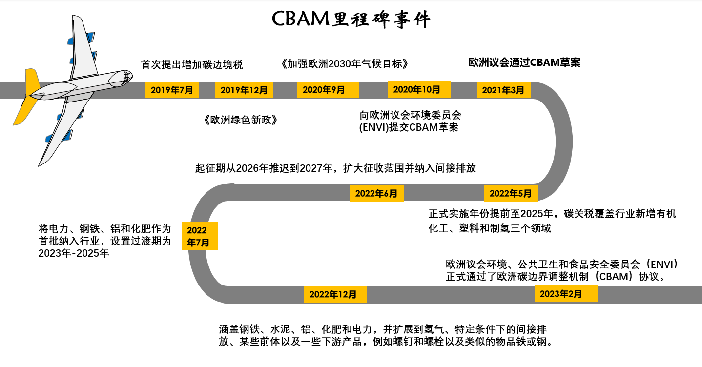 حدود ساعت 2:9 بعد از ظهر به وقت پکن در 7 فوریه، سیستم بازنگری شده تجارت انتشار گازهای گلخانه ای اتحادیه اروپا (ETS) و مکانیسم تنظیم مرز کربن (CBAM) رای مثبت دادند و انتظار می رود این لایحه پس از رای کامل پارلمان اروپا در سه ماهه دوم سال 2019 رسما تصویب شود. 00. در اکتبر 2023، 2023، "تعرفه کربن" اروپا در مرحله انتقال به اجرا درآمد.